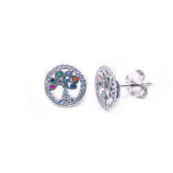 P. Pendientes de Árbol de la Vida liso y cerco con piedras en rodio