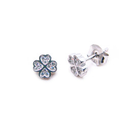 P. Pendientes de Árbol de la Vida liso y cerco con piedras en rodio