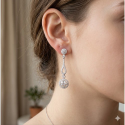 P. Pendientes Tu y Yo con Perla cultivada de 10mm y Árbol de la Vida con piedras rodiados en Omega