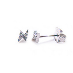 P. Pendientes Tu y Yo con Perla Cultivada y piedras rodiadas en Omega