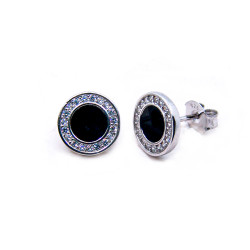 P. Pendientes de Orla con resina negra en el centro y piedras alrededor rodiados