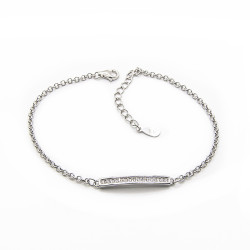 Pulsera plata lisa combinada cadena barbada con tres eslabones microfusión oval grandes