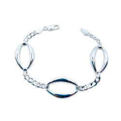 Pulsera plata lisa combinada cadena barbada con tres eslabones microfusión oval grandes